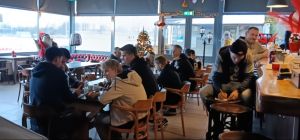Ondanks de kou, sneeuw en gladheid, waren er zelfs leden die met de fiets kwamen. De echte fietsers(-)