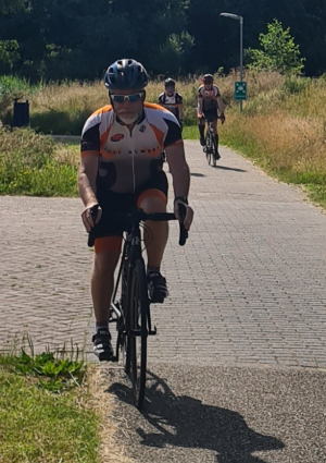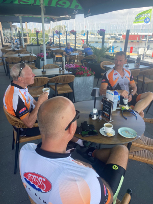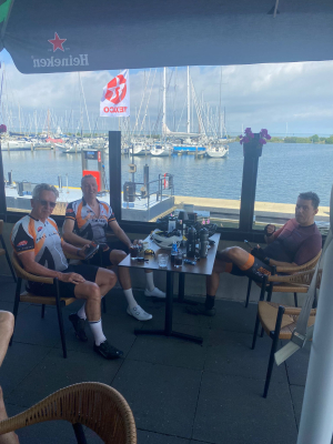 toergroep 29 juni 2025 (1/1) Title Een warme rit naar lelystad, de A/B groep ging boven lelystad langs en de C groep onderlangs naar natuurpark lelystad. Even in de schaduw uitrusten!! Toerfietsen foto's Overzicht