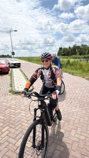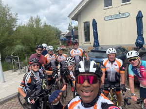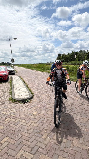 Dinsdagmiddag heeft een groepje van negen fietsers een tochtgemaakt naar Holysloot. De weersomstandigheden waren droog, met een stevig windje na de koffiestop in de school van Holysloot is de groep teruggekeerd richting Almere.